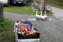 GB. Wales. Hay on Wye. Apples for Sale at the roadside. 2011....