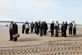 GB. Wales. Tenby. People wait to be collected for a funeral on...