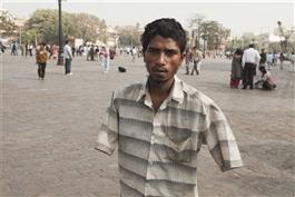 INDIA. Dehli. A man begs for money at a taxi window. 2010.