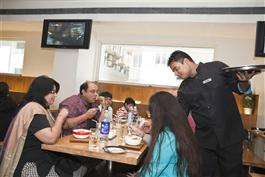 INDIA. Mumbai. A family eats in a Mubai takeaway restaurant....