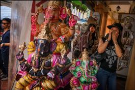 Singapore. Visitors pass images of Ganesh on Serangoon Road in...