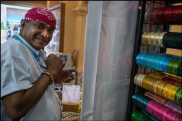 Singapore. A shopper in the small arcade on the Serangoon Road...