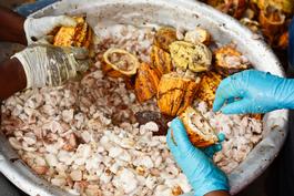 GHANA. Cocoa Research Institute of Ghana. Preparing fermentation....