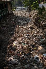 MYANMAR. 2014. YANGON. Waste and polution in a slum area.