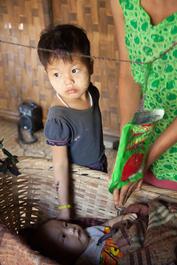 MYANMAR. 2014. HAKHA. Chin State. Early morning. Holding on to...