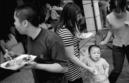 Asia. China. Sichuan. Dujiangyan. A family takes lunch in...