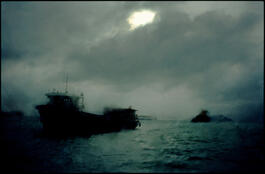 CHINA. Hong Kong. 2002. Ships ride out the typhoon in the Hong...