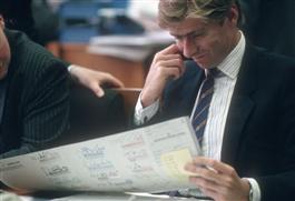 LONDON, Lloyds. An Underwriter examines a slip. 1999.