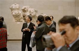 Europe. England UK. London. Tour guide discussing the Elgin...