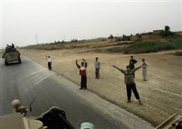 IRAQ. On the road to Baghdad. Kids welcoming American soldiers....