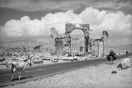 SYRIA. Palmyra. General view of the ruins of Palmyra. A man on...