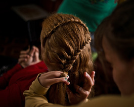 UKRAINE. Petrokhiv. Ternopil. 2013. Girls makes a pattern with...