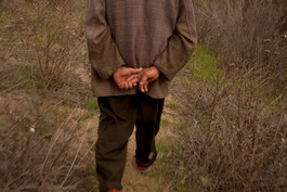 TURKMENISTAN. Kerki. 2009. A beekeeper walks through his camp...