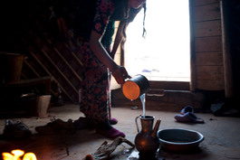 TURKMENISTAN. Damla. 2009. A girl pours water for tea into a...