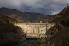 KYRGYZSTAN. Naryn. 2008. A dam on the Naryn River. It is part...