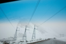 KYRGYZSTAN. Naryn. 2008. Power lines strung through the mountains...