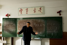 KYRGYZSTAN. Osh. 2008. A teacher of Chinese language in a classroom...