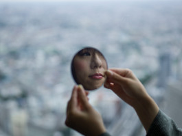 JAPAN. Tokyo. 2015. Soth holding a pocket mirror. Park Hyatt...