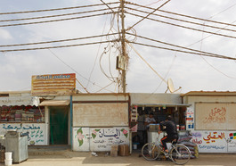Jordan. Near Mafraq. Za'atari Syrian Refugee Camp. Electricity...