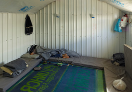 Jordan. Azraq Syrian Refugee Camp. Inside a hut occupied by three...