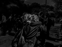 GREECE. Lesbos. 2015. Refugees and migrants wait for their turn...