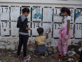 TUNISIA. Tunis. 2015. A boy playing in a schoolyard in the Medina...