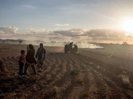 TUNISIA. Sfax Province. November, 2015. A family of farmers tending...