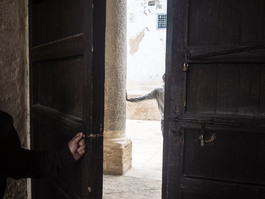 TUNISIA. Kerouan. 2015. A man enters the Great Mosque of Keruan,...