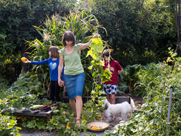 USA. Redwood City, CA. 2015. Claire Sonnenburg arranges pumpkins...