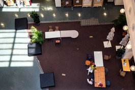 USA. Stanford University. 2015. The common area of the Fairchild...