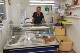 GB. England. Cornwall. Newlyn. Andy Howes. Fishmonger. 2018.
