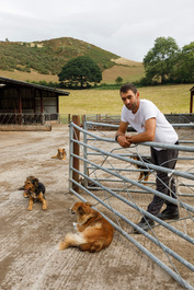 GB. Wales. Tal-y-bont. Rhodhi Lloyd-Williams. Moelgolomen Farm....