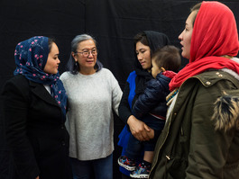 GREECE. Athens. 2019. Deborah Carlos Valencia among refugee and...