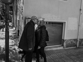 GREECE. Athens. 2019. Debbie and Joe Valencia walking in their...