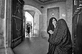 Iran. Shiraj. 2018. Ladies outside the Pink Mosque (Nasir-Ol-Molk)....