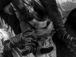 Migrant caravan crossing from Guatemala into Mexico. 2018.