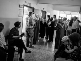 TURKEY, Ankara, 2018. People in queue at a polling station to...
