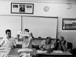 TURKEY, Ankara, 2018. People take stairs at a polling station...