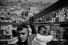 TURKEY. Mardin. 2018. People build house in a small village near...
