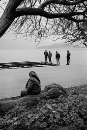 TURKEY. Balikesir. 2018. Young men stand near the Marmara sea...