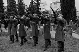 TURKEY. Istanbul. 2018. Turkish soldiers stand in a cemetery...