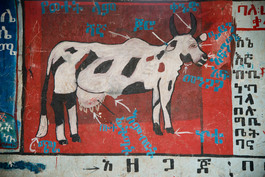 ETHIOPIA. Omo Valley, Ethiopia, 2013 Painting of a cow diagram...