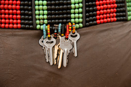 ETHIOPIA. Hamer Tribe, Omo Valley, 2013 Keys hanging on a beeded...