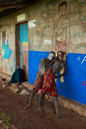 ETHIOPIA. Omo Valley, 2013. Human anatomy painted on a wall.