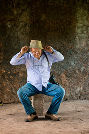 ETHIOPIA. Omo Valley, 2013. Yury Chernykh poses in a hat.