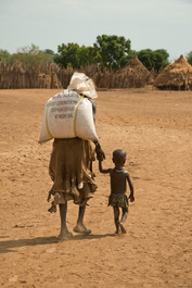 ETHIOPIA. Omo Valley, 2013. Mother and child walk to the villages....