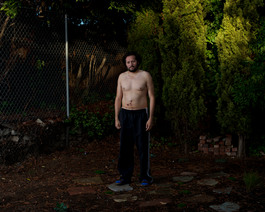 USA. Vallejo, CA. 2016. Andrew in the alley outside his shared...