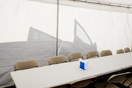 USA. Vallejo, CA. 2016. Set table for church feast, Sonoma Blvd....
