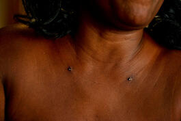 USA. Vallejo, CA. 2016. Denise's piercings (at her daughter's...