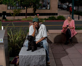 USA. Vallejo, CA. 2016. Dog trimming on Georgia Street.